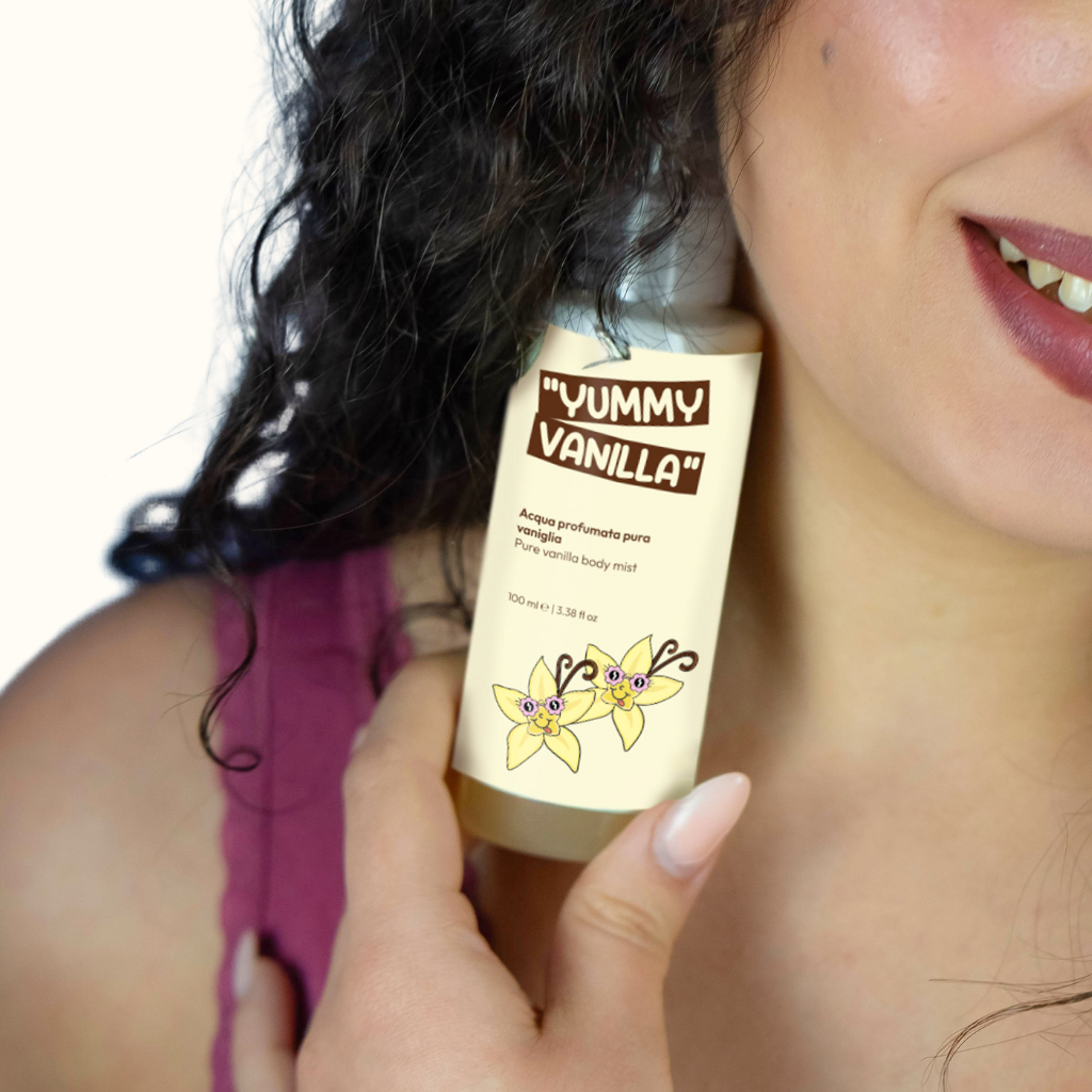 Sono l'acqua profumata che ti farà ricordare il profumo di vaniglia esotica del Madagascar. Il mio aroma è dolce con delicate note speziate, che ti daranno un tocco di classe unico. Sono cosi naturale che puoi spruzzarmi su corpo, viso e capelli, inoltre non macchio i vestiti.