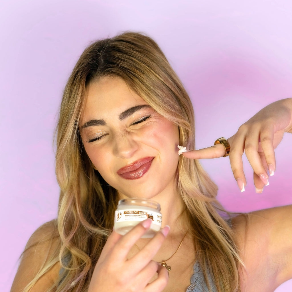 Sono il balsamo struccante e detergente che solo una “loca” non userebbe! Ispirato al paradiso caraibico di Cayo Coco, sciolgo letteralmente tutto il trucco (anche quello di Halloween) e le impurità grasse, lasciandoti una pelle fresca e pulita, con un naturale e delicato profumo di cocco tropicale. Sono adatto a tutti i tipi di pelle anche le più sensibili, non brucio gli occhi e ti lascio una sensazione di idratazione e morbidezza. Insieme alla Mousse detergente micellare, formo la famosa doppia-detersione.