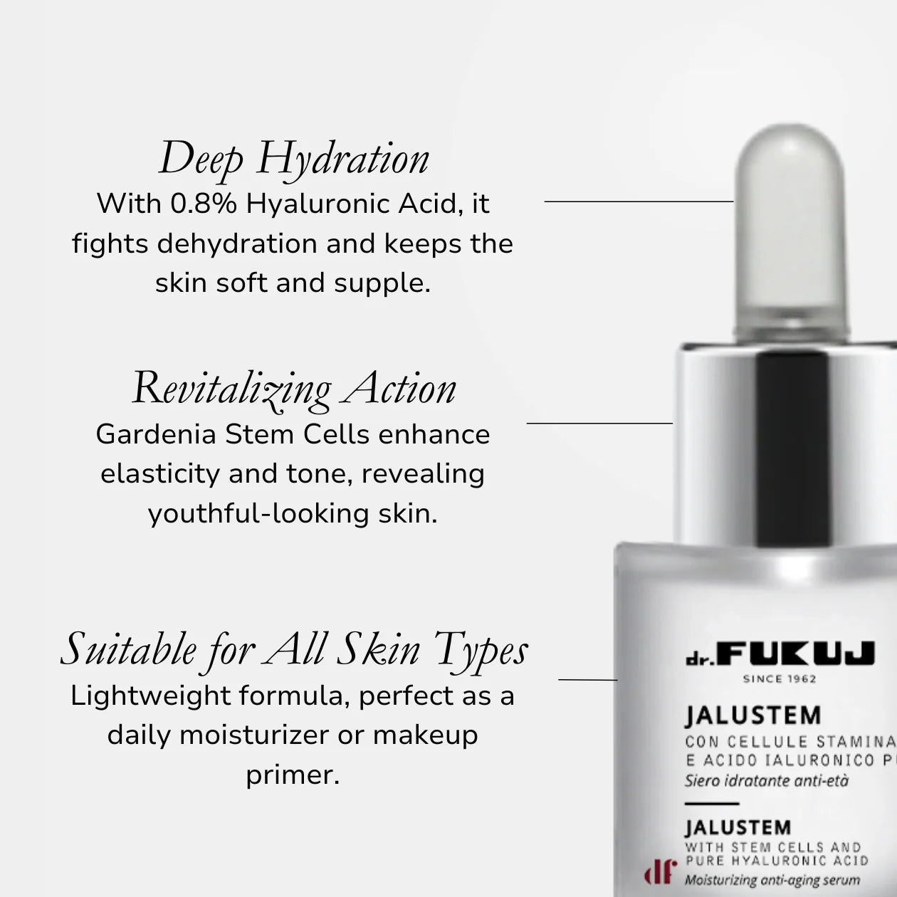 Siero viso formulato per contrastare disidratazione e perdita di elasticità, arricchito con Acido Ialuronico 0,8% e Cellule Staminali di Gardenia, per un trattamento mirato che mantiene la pelle morbida, tonica e visibilmente più giovane. Adatto alle pelli mature grazie alla sua azione rivitalizzante, è ideale anche per le pelli giovani come idratante quotidiano o primer.