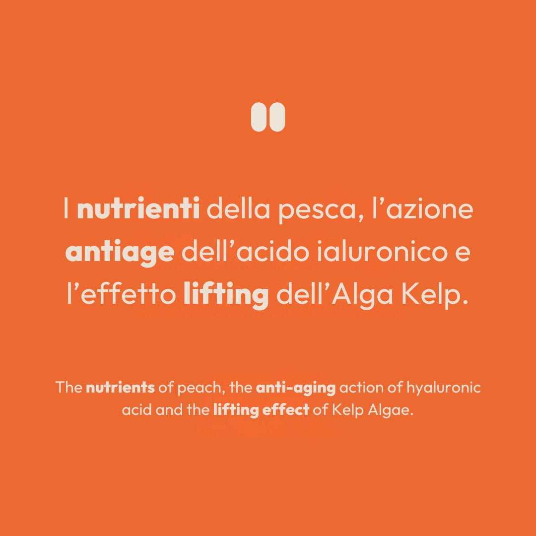 Sono il siero viso in grado di combinare effetto filler e lifting, grazie all'acido ialuronico e ai polisaccaridi dell'alga kelp gigante; inoltre, l'estratto di pesca mi rende idratante, antiossidante, fresco e nutriente.